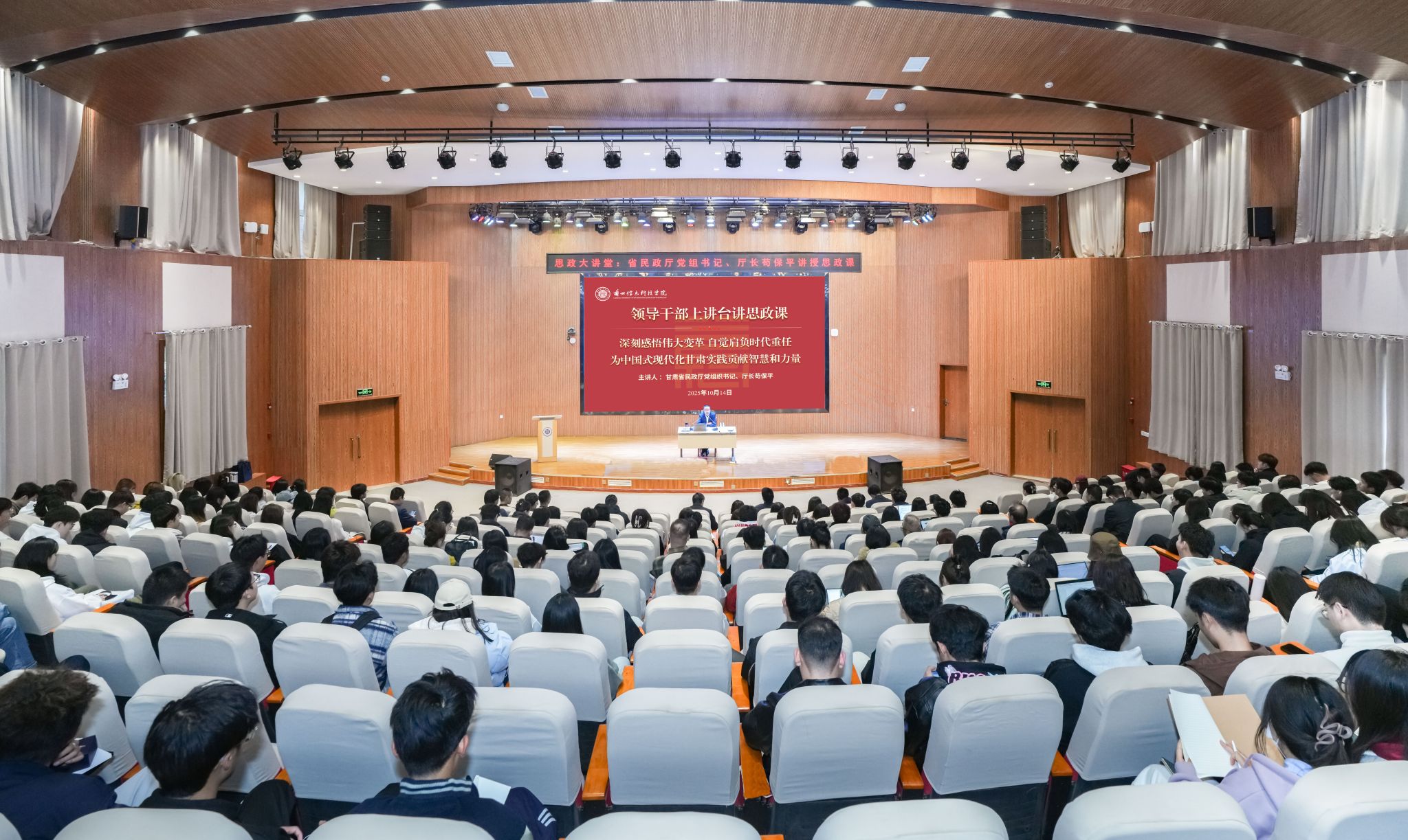 校领导,党委各部门负责人,各二级党组织书记,学生处及团委全体干部,马克思主义学院教师,全体辅导员,“青马工程”全体学员及各二级学院学生代表共计300余人到场聆听。