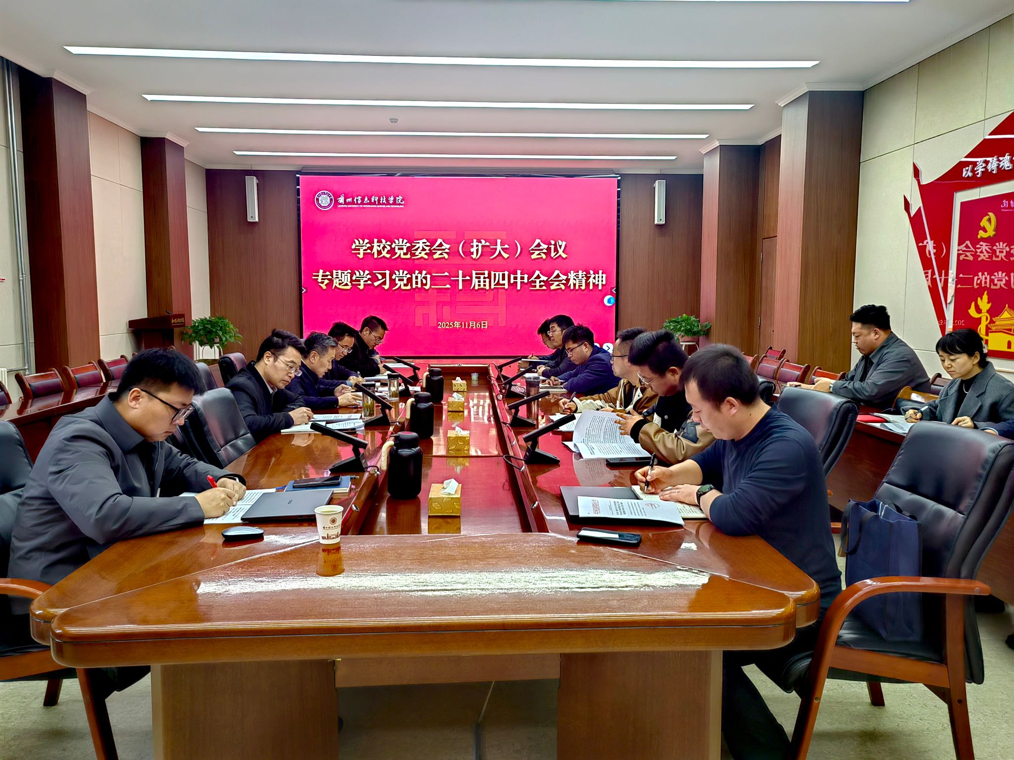 11月6日,学校召开党委常委会(扩大)会议,传达学习党的二十届四中全会精神,部署学习宣传贯彻落实工作。党委书记周怀春主持会议并领学党的二十届四中全会精神,强调要深入学习领会党的二十届四中全会精神,深刻领悟“两个确立”的决定性意义,增强“四个意识”、坚定“四个自信”、做到“两个维护”,以更强的决心、更实的举措、更硬的作风,砥砺奋进、攻坚克难,推进好“十五五”时期学校各项事业发展。