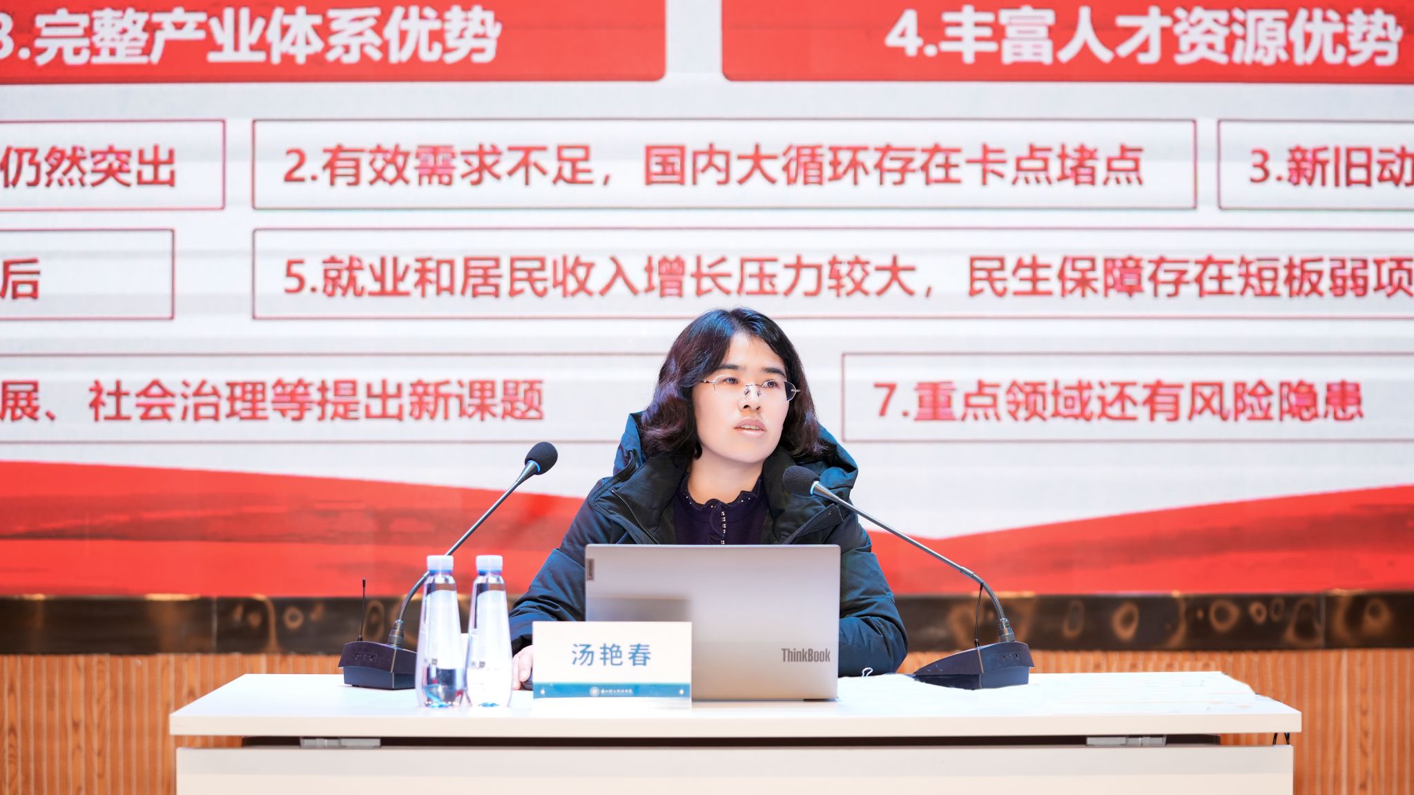宣讲会上,汤艳春教授以《深学笃行二十届四中全会精神,勇担“十五五”现代化新使命》为题,紧扣党的二十届四中全会精神核心,全面梳理“十四五”时期我国经济社会发展的辉煌成就,深入解读党的二十届四中全会的战略意义,深入剖析“十五五”时期我国发展环境的基本特征,深刻阐述中国式现代化“十五五”行动纲领的核心内涵,明确指明以实干担当将宏伟蓝图变为现实的实践路径,对落实落细学校教学、科研、管理服务等各项工作具有重要的指导意义和推动作用。
