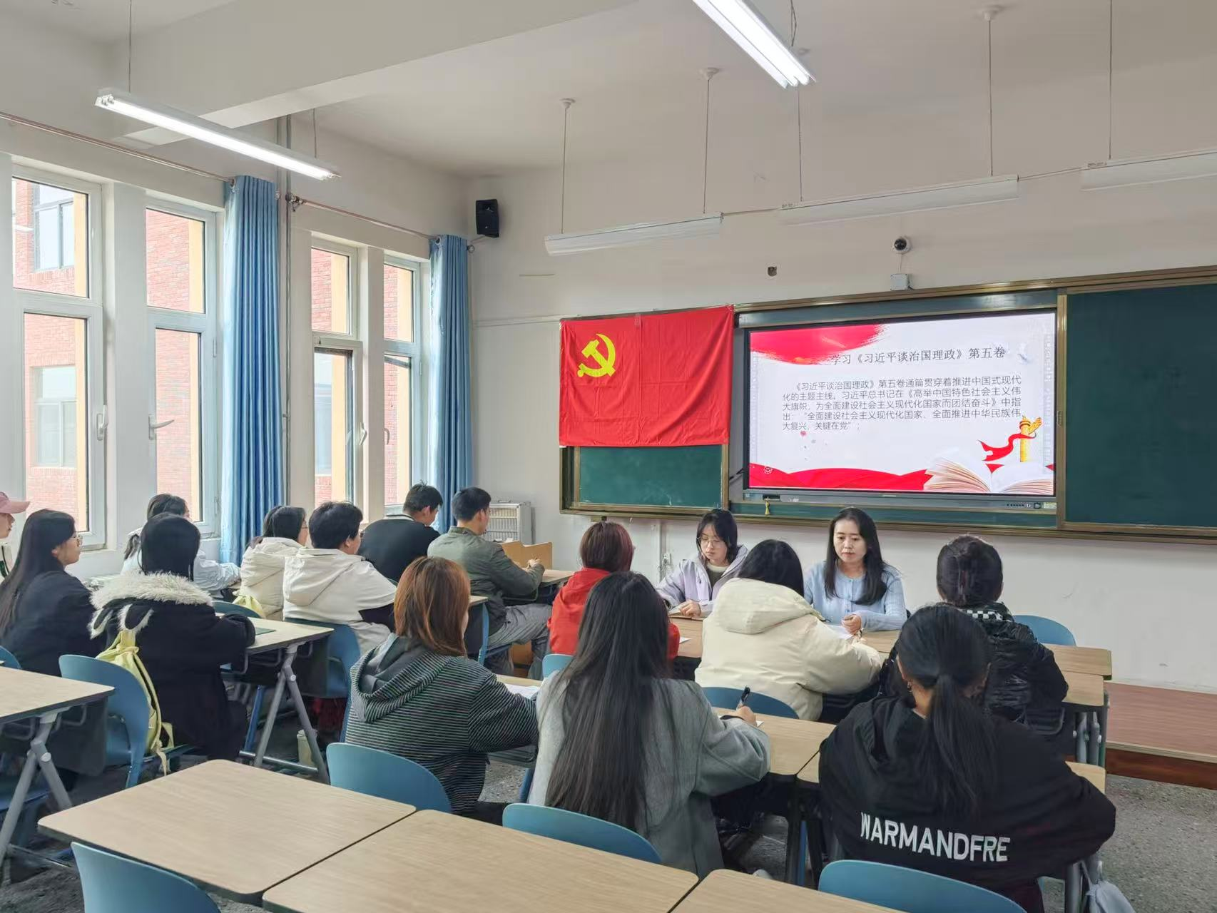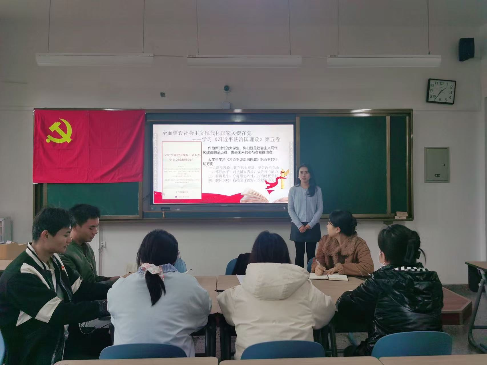 11月5日,健康工程学院学生第三党支部以“青春向党担使命 笃行奋进谋新篇”为主题,召开党的二十届四中全会精神暨“十五五”规划专题党课学习,支部书记柏静主持主讲,全体党员参会,通过研学公报、专业解读、交流发言等形式,筑牢党员思想根基,明晰科技报国使命。