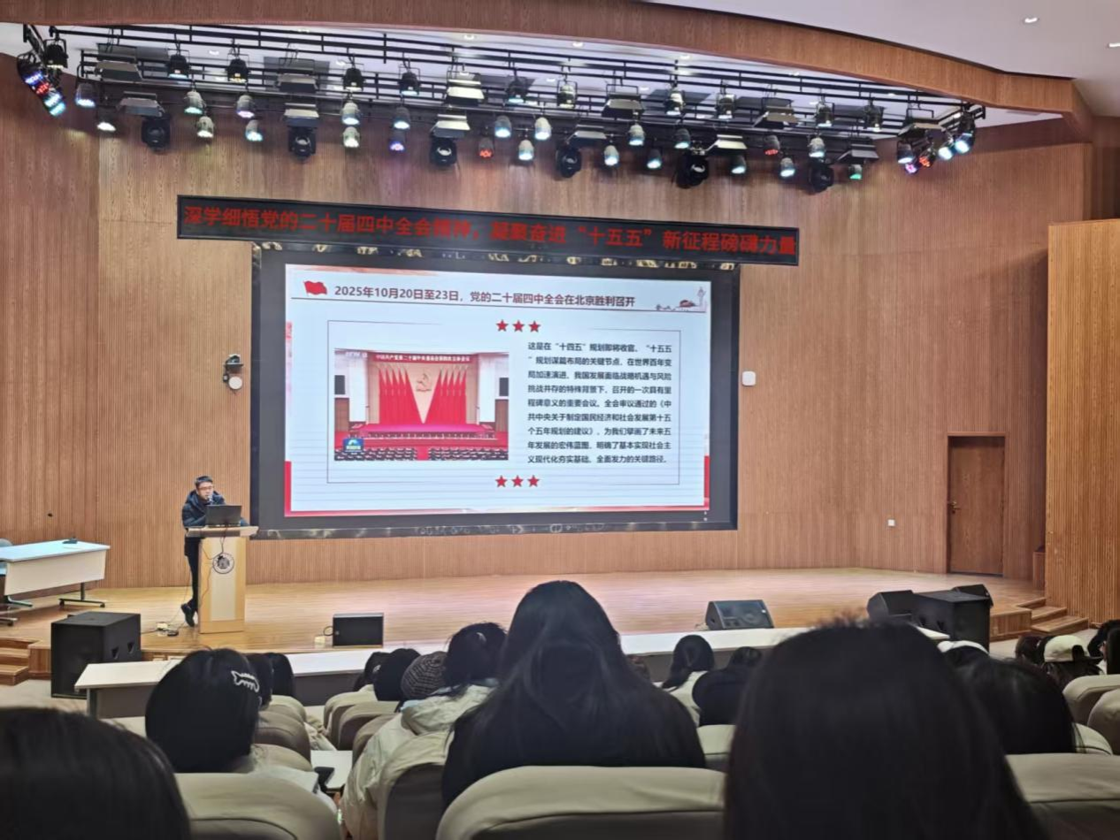 为深入学习贯彻党的二十届四中全会精神,推动“十五五”规划建议在青年党员中落地,12月9日,兰州信息科技学院商学院学生第一党支部牵头举办跨支部专题联合党课。学院党委书记杨文晶主讲,来自学院10个学生党支部的全体党员参会,实现多支部理论共学、思想共振。