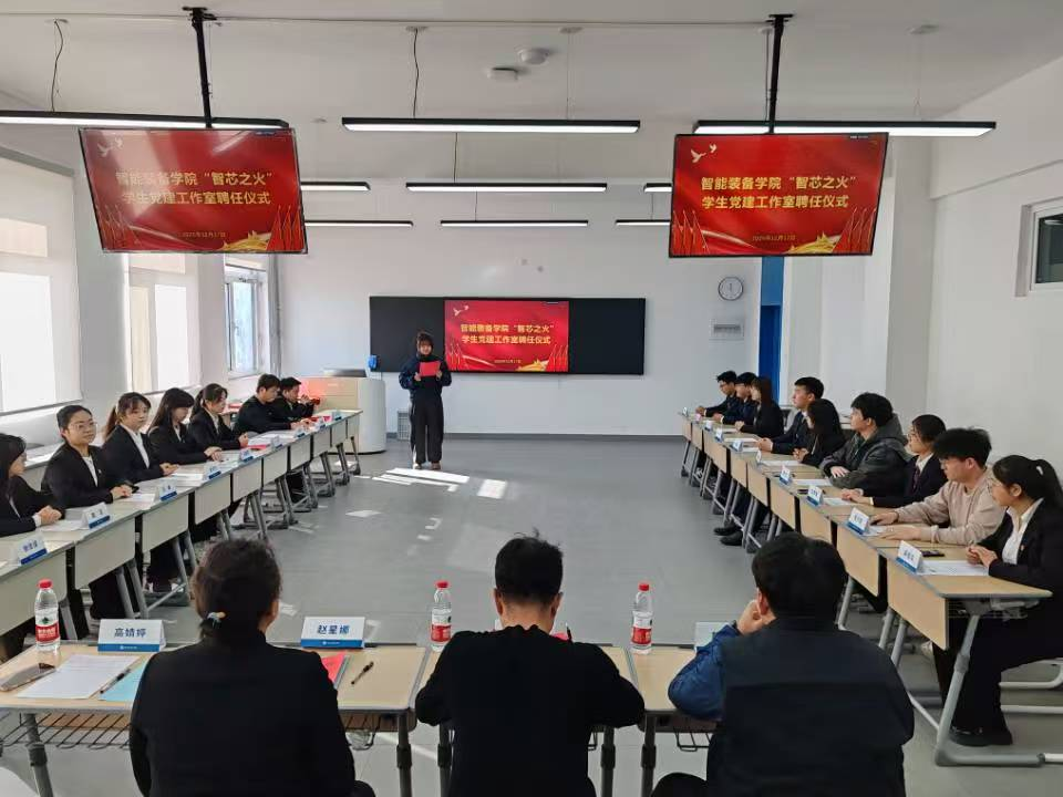 为深入贯彻落实新时代党的建设总要求,锚定“党建+专业”融合育人核心目标,进一步激活学生党建工作内生动力,打造兼具智能装备学科特色与育人实效的党建阵地,12月17日中午,兰州信息科技学院智能装备学院党委主办的“智芯之火”学生党建工作室聘任仪式在第一教学楼513教室圆满举行。学院党委书记兼学生发展中心主任裴祖伟、学生发展中心副主任赵星娜、统战委员高婧婷、组织委员苗国涛出席仪式,工作室新任主任、部长及学生代表共50余人参加活动。