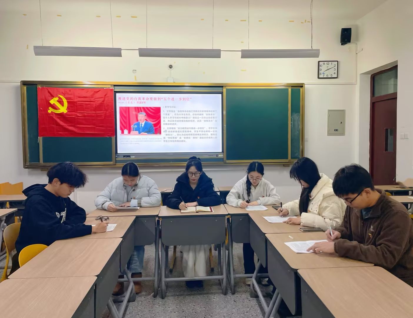 为深入学习贯彻党的自我革命精神,筑牢学生党员思想根基,12月25日,健康工程学院学生第二党支部在二号教学楼405教室召开专题党课。本次党课由支部书记朱嘉杰同志主持,全体党员参加,围绕“推进党的自我革命要做到‘五个进一步到位’”主题,研讨自我革命要求融入大学生党员学习、生活与实践的路径,推动理论学习与青年成长实践双向赋能。