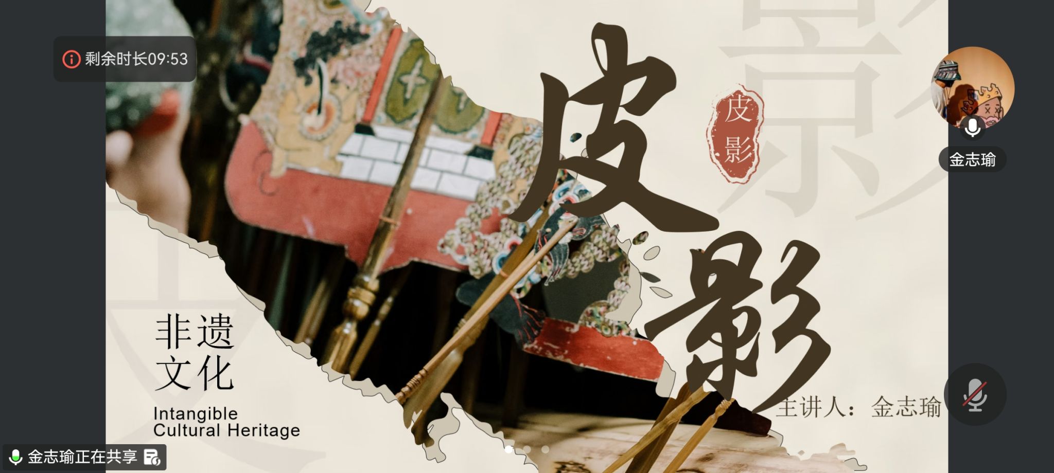 工艺讲解中,金志瑜同志结合图文,详细介绍了选皮、制皮等核心工序,剖析其中的匠心精神与美学追求。在演出形式分享中,他阐述了皮影戏角色分类、幕后配合等,展现“一口诉说千古事,两手舞动百万兵”的艺术韵味,诠释“五人戏班、百态人生”的文化内涵。