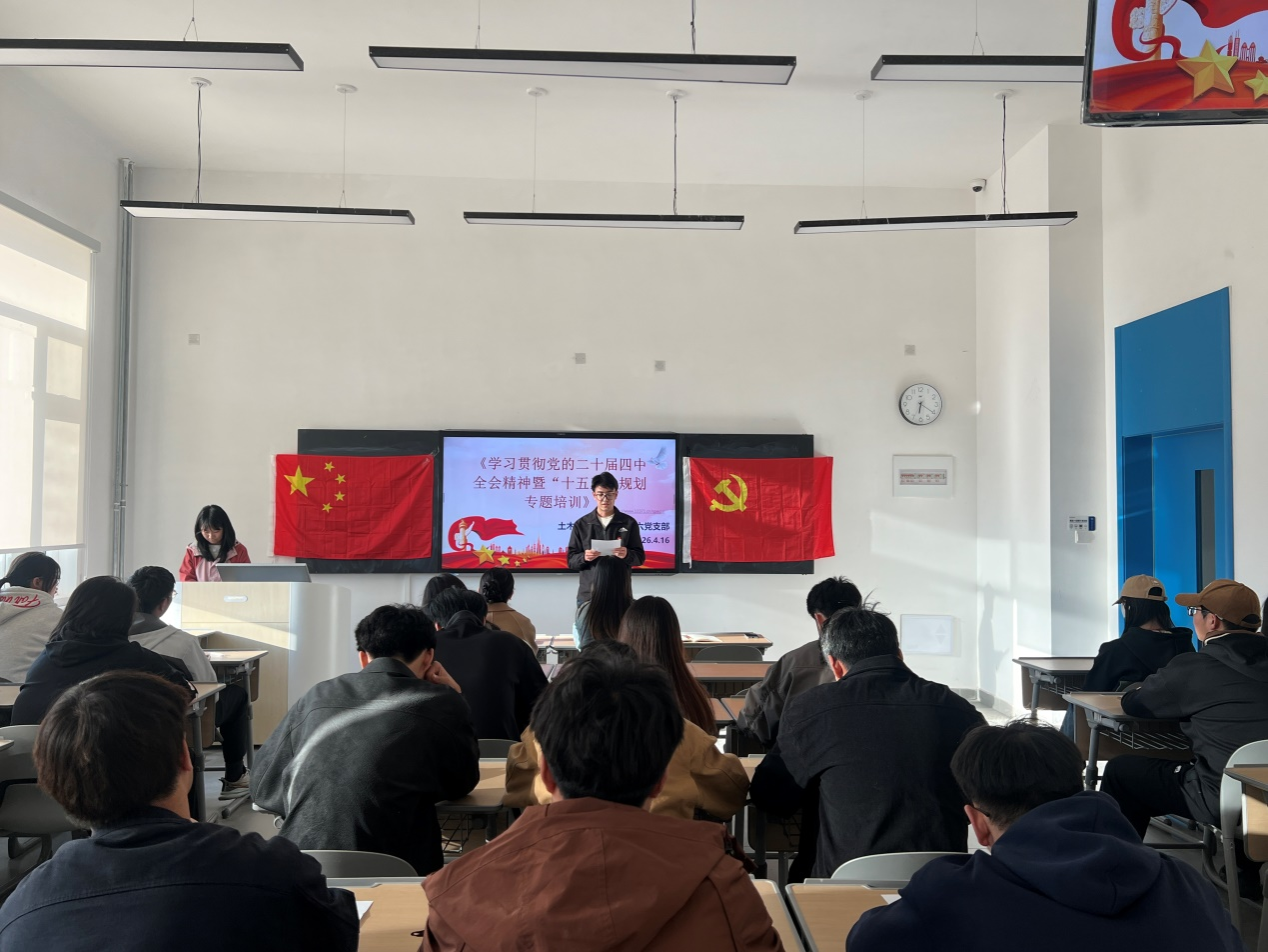 为深入学习宣传贯彻党的二十届四中全会精神,切实把支部党员的思想和行动统一到党中央决策部署上来,2026年4月16日,兰州信息科技学院土木工程学院学生第六党支部在1号教学楼106教室召开专题学习会。会议由党支部书记蔡欣妤主持。